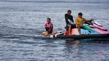 Jour 2 - la compétition de surf est lancée ce matin dans la passe de Hava’e. Conditions météo : un Vent Nord-ouest...