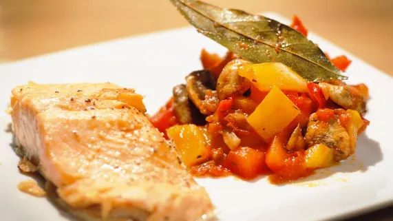 Truite aux petits légumes et chantilly au raifort