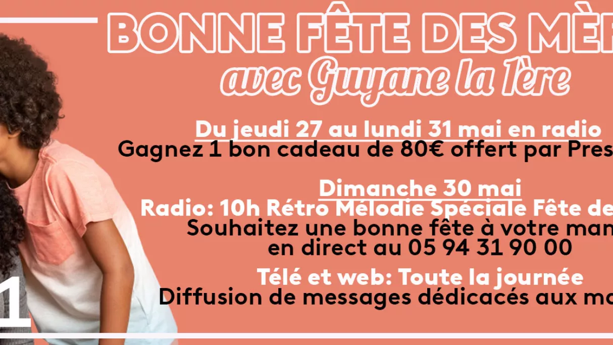 Guyane la 1ère met à l'honneur les mamans guyanaises du 27 au 31 mai en radio, en télé et sur le web. Entre jeu, cadeaux et dédicaces, nos équipes ont concocté de jolis programmes fè ké lanmou ♥ pour faire plaisir à nos « fanm poto-mitan ».