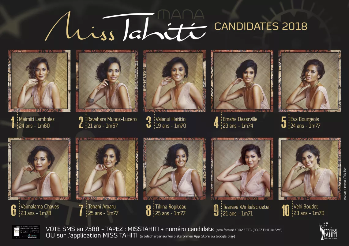 Qui succédera à Turouru Temorere, Miss Tahiti 2017 ? Réponse sur NC la 1ère, au cours d’une cérémonie exceptionnelle ! Après avoir remporté en juin dernier le concours de Miss Tahiti 2017, Turouru Temorere s’apprête à remonter sur scène pour couronner celle qui aura l’honneur et la chance de lui succéder cette année. Choisies parmi les plus ravissantes des Polynésiennes, dix jeunes femmes vont prétendre au titre de Miss Tahiti 2018.