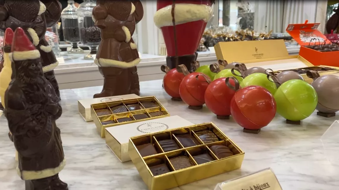 Dans la chocolaterie "Maison Cadiot-Badie" à Bordeaux, on découvre les bonbons aux chocolats, la fève de cacao, les pralinés et surtout la star emblématique de la gamme : le diamant noir : une ganache au chocolat noir macérée au raisin de bourbon.