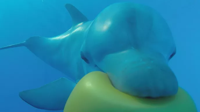 En Floride, au Dolphin Research Center — où a notamment vécu Flipper, le dauphin star de la série télévisée éponyme des années 60 ! —, une équipe scientifique réalise des expériences bluffantes avec les grands dauphins appelés aussi Tursiops, l’une des espèces de cétacés les plus intelligentes. Face à deux tableaux noirs, comptant chacun un nombre différent de points blancs, les animaux parviennent, avec la rapidité d’un humain, à indiquer à leurs soigneurs lequel contient le moins de taches blanches.
