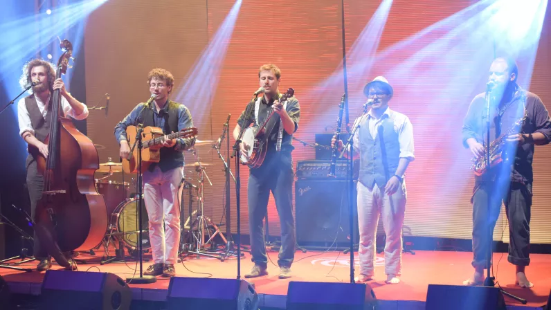 Nous finirons par un groupe de multi-instrumentistes venu de Toulouse qui swingue joyeusement : les Moustache Gracias. Entretien avec Léon, le contrebassiste du groupe. Ce dernier a eu un coup de coeur pour la Nouvelle-Calédonie et a formé le duo "Café Crème".