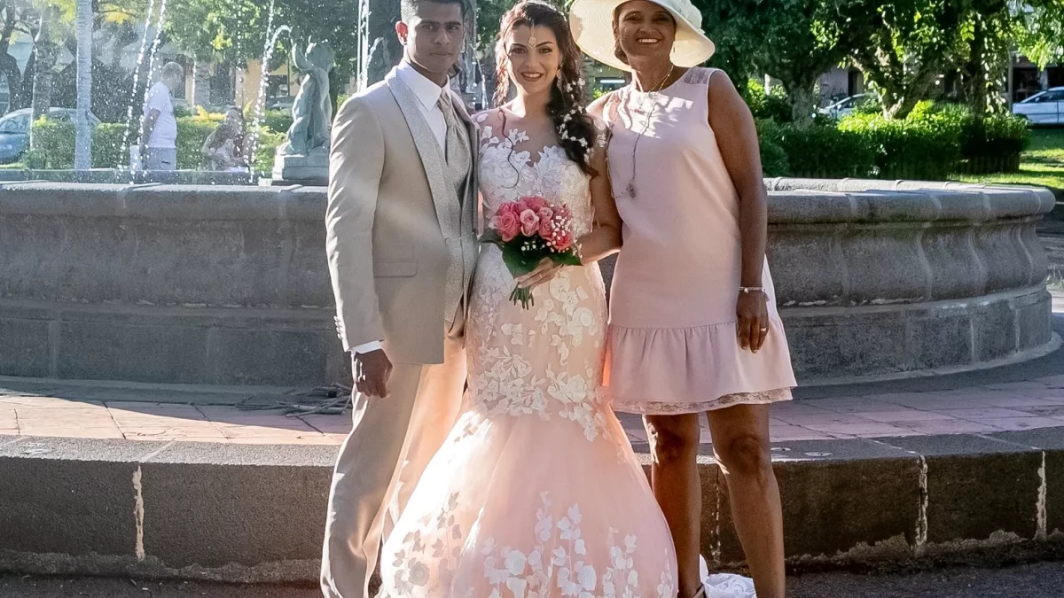 Lauriane, 34 ans divorcée et Mathias, 32 ans, se sont rencontrés grâce à une amie de la mariée. C’est une famille recomposée avec les deux enfants de la première union de Lauriane et les trois enfants de Mathias. Après trois ans de vie commune, ils se sont dits oui à la mairie de Saint-Pierre. Par la suite, les nouveaux mariés prévoient d’organiser la bénédiction de leurs alliances dans la pure tradition tamoule.