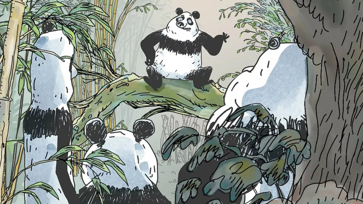 La sympathique tribu des pandas comprend de jeunes individus, mâles et femelles, qui ont connu la crise, l’ennui, la débrouille, les migrations, mais aussi des pandas âgés, nostalgiques des « trente glorieuses » et qui radotent. Une belle équipe à la fois résignée et combative, rêveuse et lucide ! Les pandas géants vivent en communauté au beau milieu des bambous et brillent par leur goût pour le débat et leur humour décalé et cynique. Les discussions d’actualité, toutes riches et animées, tournent autour de problématiques écologiques et environnementales. On parle même du terrorisme, et ce avec beaucoup de réalisme.