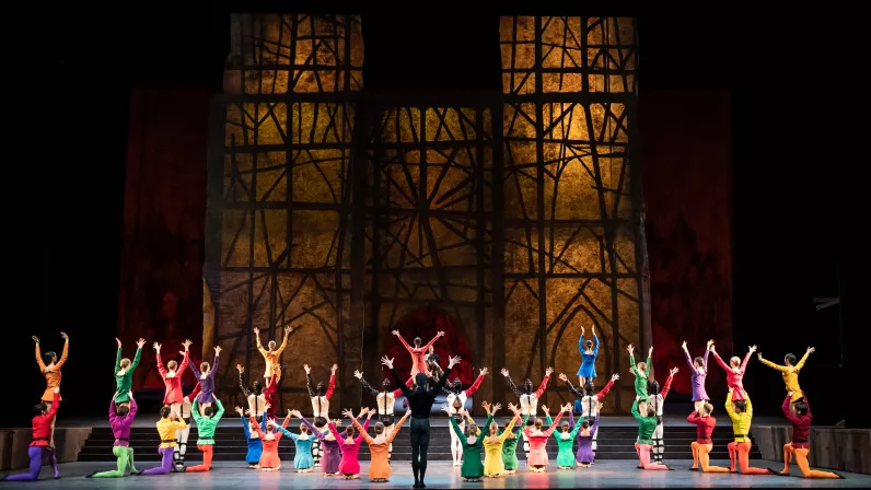 Première pièce de Roland Petit créée pour le Ballet de l’Opéra de Paris en 1965, Notre-Dame de Paris réunit tous les ingrédients du grand spectacle. Le ballet s’inspire du chef-d’œuvre de Victor Hugo, avec ses personnages hauts en couleur : la belle Esmeralda, l’attachant Quasimodo, le machiavélique Frollo et le cynique Phoebus. Yves Saint Laurent signe des costumes colorés et graphiques dans les décors du peintre René Allio qui restituent la splendeur de la cathédrale parisienne. La chorégraphie traduit toute la force expressive de ces personnages confrontés à une histoire d’amour et de mort, entourés de l’ensemble du Corps de Ballet. À l’occasion du dixième anniversaire de la disparition du chorégraphe, la Compagnie redonne vie à cette magnifique fresque dansante, sur la scène de l’Opéra Bastille.