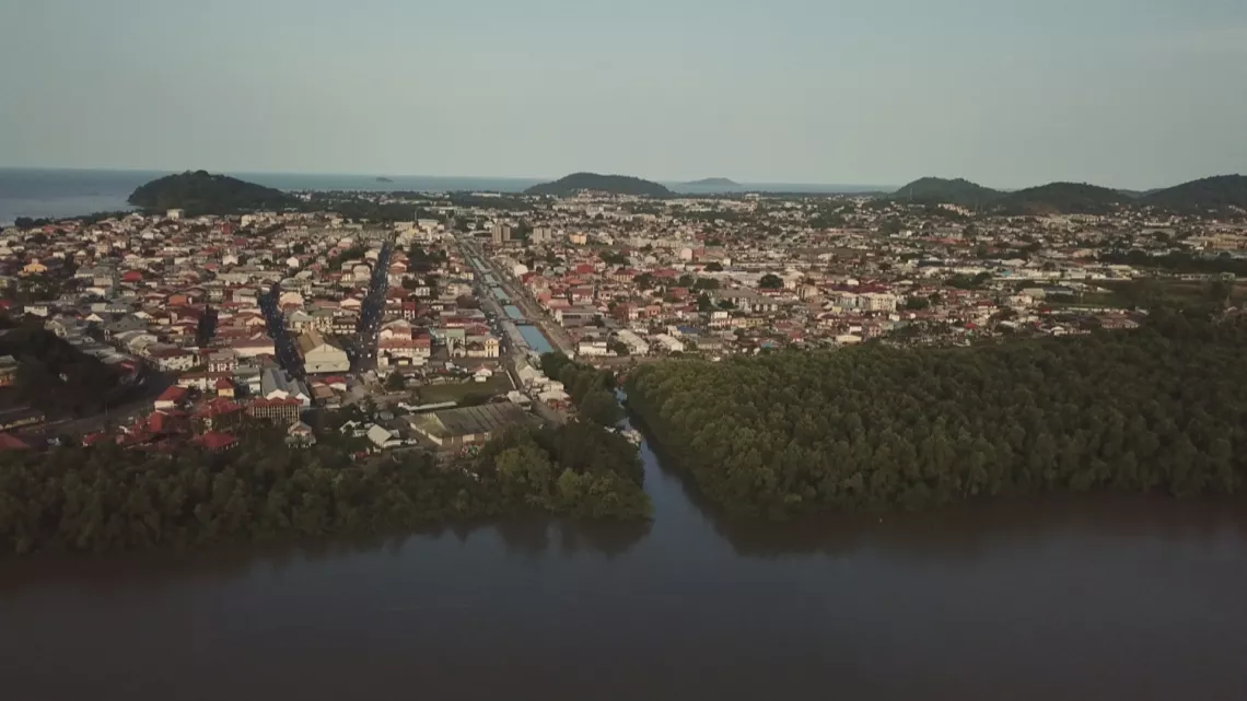 La Guyane à la réputation de tourner le dos à la mer et de regarder davantage la forêt… La faute sans doute à ce littoral particulier, embourbé par des bancs de vase venus de l’Amazone… Pourtant, l’immense majorité des Guyanais vit sur le littoral et la moitié sur « l’île de Cayenne », dont le surnom, apparu dès le XVIIe siècle, décrit un territoire enlacé par les eaux : au nord, par l’océan Atlantique, à l’est et à l’ouest, par les rivières de Cayenne et du Mahuri.