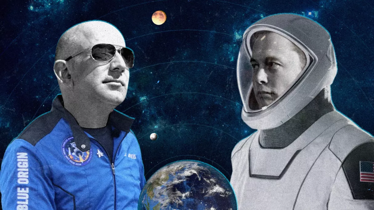 Pour raconter ce nouveau chapitre de la conquête spatiale, cette « nouvelle guerre des étoiles », deux personnages principaux servent de fil rouge à notre histoire : Elon Musk et Jeff Bezos, engagés dans un bras de fer surréaliste et implacable pour la maîtrise de l’espace.