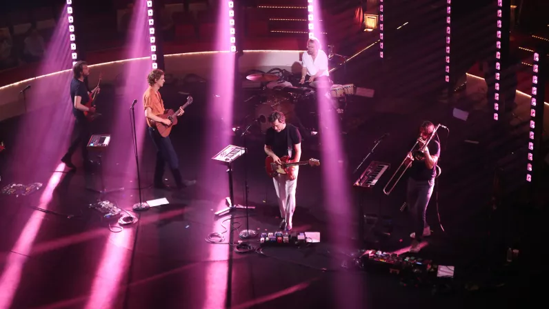 Profitez du rock groovy et ensoleillé de Balthazar. Aller toujours plus loin. C’est avec ce postulat que le groupe de rock belge Balthazar a imaginé ce qui allait être leur nouvel album Sand. Et le moins que l’on puisse dire, c’est que la maîtrise de la mélodie et du rythme est totale. Dans ce nouvel opus, le rock est enrobé de pop et de groove. Aussi, la récente pandémie les a conduits à innover dans leur manière de faire de la musique : batterie, piano, cuivre et même afro-beat se font dorénavant entendre. L’écriture également s’est simplifiée, pour coller avec ces mélanges éclectiques à profusion. La magie de ces nouvelles compositions opère lors de cette 3e édition du Culturebox Festival !