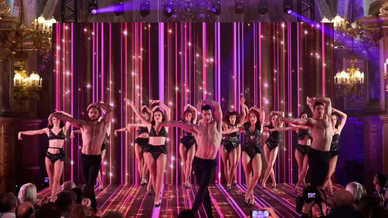 C’est ici, au cœur de trois lieux époustouflants du châteaux : la salle de Bal, la galerie François Ier, le grand escalier de la cour d’honneur, que nous allons faire la fête, chanter et danser sur des rythmes disco. Un endroit étonnant, sublimé pour cette soirée, orchestrée par Stéphane Bern, entouré de chanteurs, d’artistes aux multiples talents et des danseurs de la troupe du Paradis Latin, sous la direction artistique de Kamel Ouali !