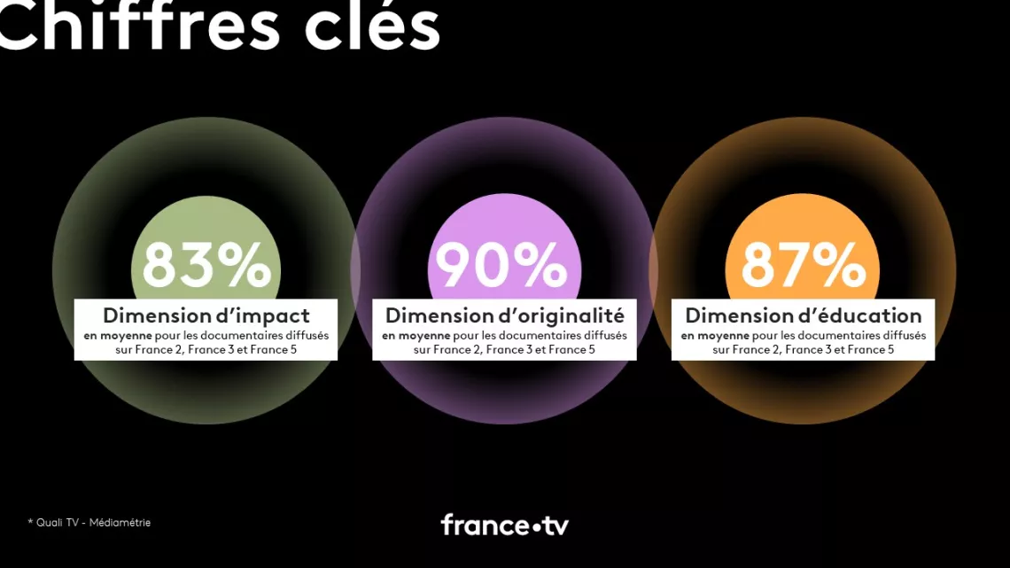 « Parce qu’il éclaire la réalité de notre monde, le documentaire enrichit notre regard, élargit nos horizons et nous relie aux autres. Ce genre a un impact unique auprès de tous les publics. Il occupe donc naturellement une place essentielle sur l’ensemble des antennes de France Télévisions. »