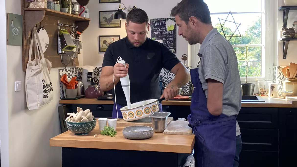 Munis d’une perche et d’un sécateur, ils conduiront Grégory au fil du canal, à la recherche de ces petites fleurs vertes. Avec une bonne récolte en poche, notre cuisinier se rendra ensuite dans leur microbrasserie. L’occasion pour lui de découvrir les procédés de fabrication de l’une des plus anciennes boissons du monde.