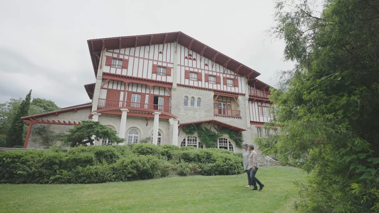 Dans les jardins et les magnifiques pièces de la Villa Arnaga, Yannick et Béatrice Labat, évoquent la construction de cette demeure, conçue par Edmond Rostand et par l’architecte, Joseph-Albert Tournaire, qui en firent un « poème de pierre et de verdure » en l’espace de trois ans. C’est l’une des premières maisons dans le style architectural néo-basque, copié sur les fermes du Labourd, qui va se répandre par la suite dans tout le sud-ouest au cours du XXème siècle. Elle raconte comment l’énorme succès de Cyrano de Bergerac, qui lui apporte argent et notoriété, a permis à Edmond Rostand de réaliser son rêve et évoque aussi l’importance de la poétesse Rosemonde Girard, son épouse, dans la création de son œuvre littéraire.