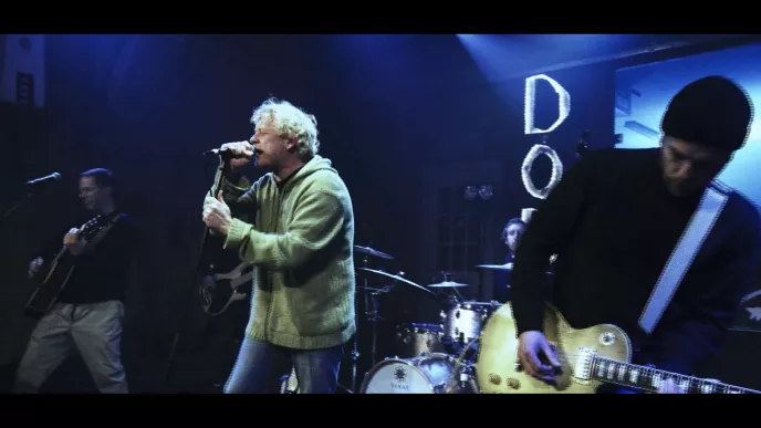 C’est dans un véritable écrin saint-pierrais que le concert a été capté : un grand hangar de restauration de doris (petite embarcation en bois traditionnelle), lieu symbolique de l’archipel. L’ancienne structure métallique rappelle les grandes heures de Saint-Pierre à l’époque où la pêche à la morue battait son plein. Mais aussi la période de la prohibition où l’alcool clandestin partait de ce hangar pour le continent américain. L’option des tonalités bleues retenue pour l’habillage de la scène rappelle la force de l’océan sur cette terre nord-atlantique.