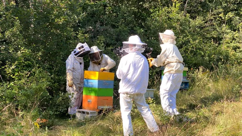 Non loin de là, à Comps, Carinne enfile la tenue d'apiculteur pour relever le miel des ruches de Luc Rosetti. A la fois éleveur et producteur de miel, son exploitation est également devenue un musée : les Ruches du Monde.