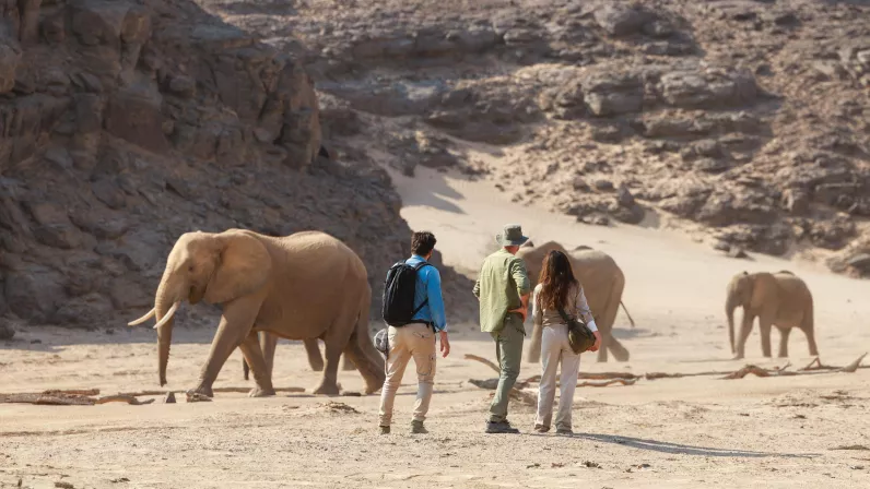 À pied, sans protection, Perrine, Gil et Diego Buñuel vont s'approcher au plus près d’animaux légendaires. Mais toujours dans le respect de leur espace… Ensemble, ils se retrouvent dans un face-à-face spectaculaire avec un troupeau d’éléphants qui se sont adaptés aux conditions extrêmes du désert. Et les pachydermes les acceptent au cœur de leur tribu. Diego et Perrine exaucent également l’un des vœux les plus chers de Gil : une rencontre avec un rhinocéros noir, un des animaux les plus solitaires, les plus farouches et les plus rares de toute la faune africaine. Un moment d’émotion intense pour le comédien. Privilège que peu ont vécu : ils partent ensuite à la rencontre de deux lionnes orphelines, Alpha et Bravo, qui depuis des années survivent grâce à la nourriture qu’elles trouvent sur les rivages spectaculaires de l’Atlantique Sud ; un lieu où se rencontrent le désert et la mer dans un paysage unique au monde. Ils en profitent pour plonger au milieu de la plus grande colonie d’otaries à fourrure au monde qui les accueillent dans leur univers marin.