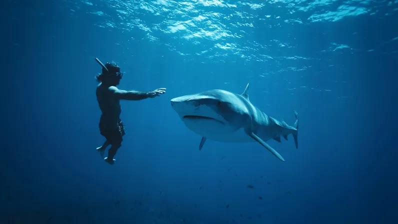 La quête de Diego va d’abord passer par la Polynésie où toutes les espèces de requins sont aujourd’hui protégées sur l’ensemble du territoire, ce qui en fait le plus grand sanctuaire au monde. Parmi la vingtaine d’espèces recensées, il en est une qui fascine autant qu’elle effraie, c’est le requin-tigre. Pour s’en approcher, Diego a souhaité se faire accompagner de Denis Grosmaire, un célèbre apnéiste qui vit en Polynésie depuis toujours et a dédié sa vie à la protection des requins, une espèce exterminée sur la plupart des mers du monde, notamment pour la consommation de ses ailerons. Diego, pourtant plongeur expérimenté, fait face à des conditions extrêmes de plongée avant de pouvoir espérer rencontrer le Tigre d’Apataki.