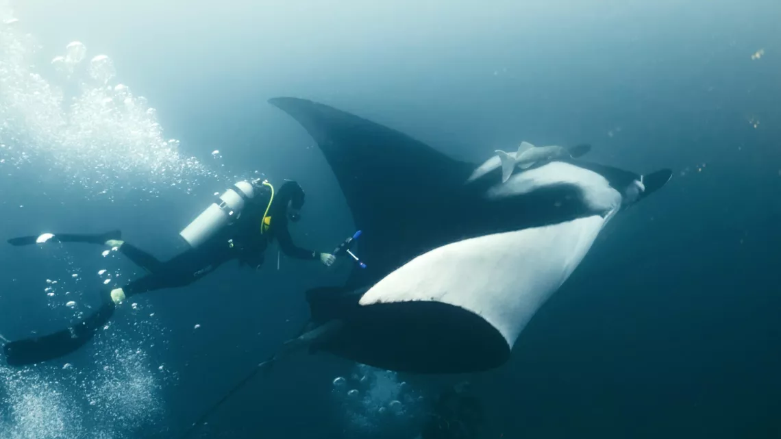 1 500 km plus au nord, en Equateur, la richesse du courant de Humboldt donne naissance à une profusion exceptionnelle de vie marine dans le sanctuaire des îles Galápagos. Et c’est au large de Guayaquil, non loin de la Isla de la Plata, aussi appelée les petites Galapagos que nous allons à la rencontre du biologiste marin Michel Guerrero. Il s’est, depuis des années, passionné pour la vie des raies mantas géantes, l’un des animaux les plus gracieux et majestueux de nos océans aujourd’hui menacée d’extinction.