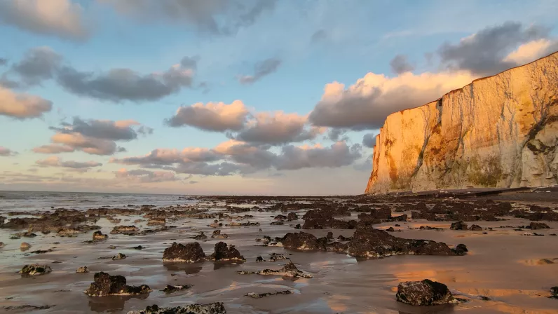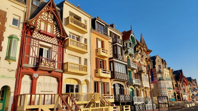 Mers-les-Bains dans la Somme est l’une des trois stations balnéaires “sœurs” du littoral de la Manche avec celles d’Eu et du Tréport. Elle se situe à la limite entre les régions des Hauts-de-France et la Normandie. Depuis sa falaise de craie culminant à 95 mètres se dégage un incroyable panorama sur une immense plage de galets bordée des villas colorées à l’architecture verticale, balcons et bow windows finement ouvragés. Jadis petit village de pêcheurs et d’agriculteurs, Mers-les-Bains a connu un essor fulgurant dès 1860 avec l’essor de la mode des bains de mer et l’ouverture de la ligne de chemin de fer entre Paris et Le Tréport. C’est toute la bourgeoisie parisienne qui s’y presse pour s’offrir week-ends et courts séjours. Aujourd’hui, le village offre aux touristes tous les plaisirs du bord de mer, balades en bateau, sports de glisse sur les vagues de la Manche, et dégustation de spécialités locales comme la ficelle picarde. Tous les étés, Mers-les-Bains consacre une fête costumée dédiée à la Belle Époque : la fête des Baigneurs.