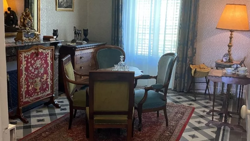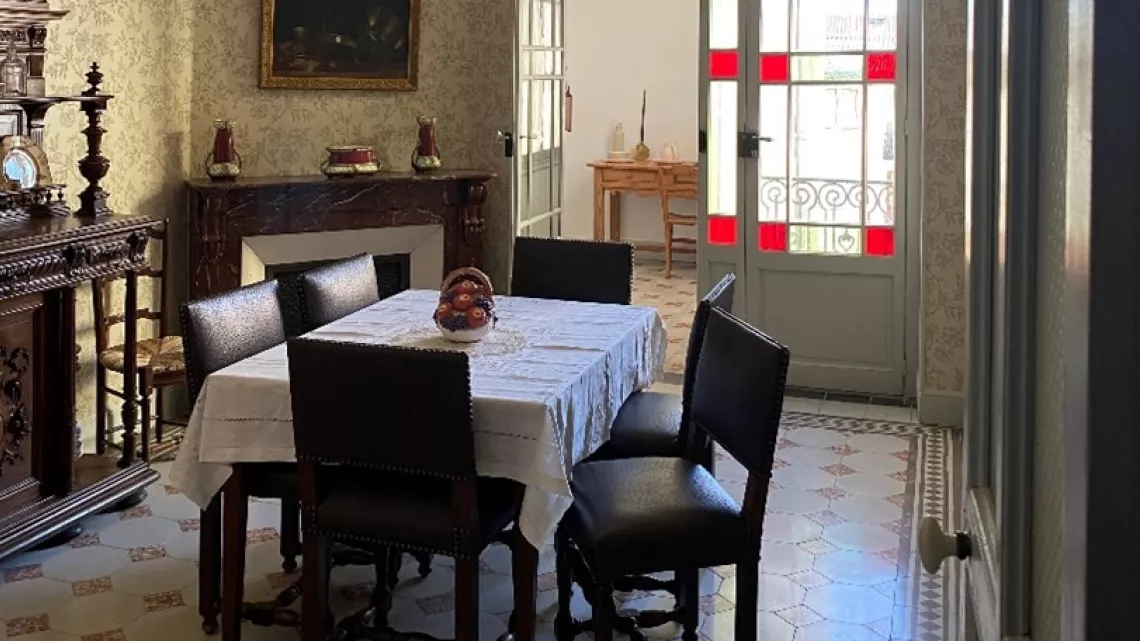 Quand la famille Moulin s'installe au 6 rue d'Alsace, cet appartement neuf donnait sur la vaste place du Champ de Mars. Du balcon, on dominait la caserne des chasseurs et son va-et-vient de soldats à pied et à cheval. La place était aussi un lieu de jeux et de spectacles. C’est là que s'installaient tous les cirques qui faisaient halte dans la ville. Ce balcon était le poste d’observation du petit Jean Moulin sur le monde. Ses dessins d’enfance sont nombreux et nous révèlent ce que voient ses yeux de « minot » comme on dit dans le sud : des clowns en parade, des soldats, une esquisse des platanes. C’est dans ce sud joyeux dont il a gardé l’accent, qu’il a développé son humour parfois sarcastique. C’est là, auprès d’un père humaniste et impliqué en politique, qu’il a forgé son caractère, ses idéaux.