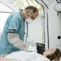 Nous avons donc bloqué des rues, aussi bien dans le quartier du Panier à Marseille que dans celui de Libération à Nice, pour y faire circuler des véhicules militaires ultra-modernes et patrouiller des contrôleurs sanitaires, des milices et la police municipale surarmée. Inventer un hôpital de fortune était aussi un défi de taille. Avec la cheffe décoratrice, nous avons cherché beaucoup de références pour trouver les matériaux les plus modernes et les installer dans la cour de cet ancien lycée où les contemporains de Camus auraient pu faire leurs études !