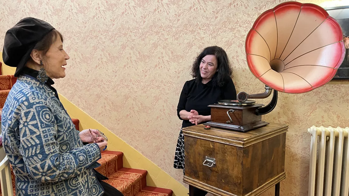 Enfin, au sous-sol, dans la salle historique du Vauban, nous retrouvons les stars Dan Ar Braz, Denez Prigent, la comédienne, autrice et chanteuse Nolwenn Korbell, Yuna le Braz avec ses gramophones et Sanseverino, le seul non Breton de la soirée !