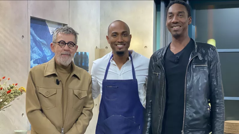 Il est César Wagner, flic hypocondriaque et stressé, sur France 2. Et il est aussi en cuisine avec Brice Laurent Dubois. Gil Alma va préparer avec notre chef un vol-au-vent à la daurade et béchamel au curcuma, un clin d'œil à celui qui, entre autres métiers, a exercé celui de poissonnier. Ils s'attableront pour le déguster avec la star des comédies musicales, Gwendal Marimoutou.