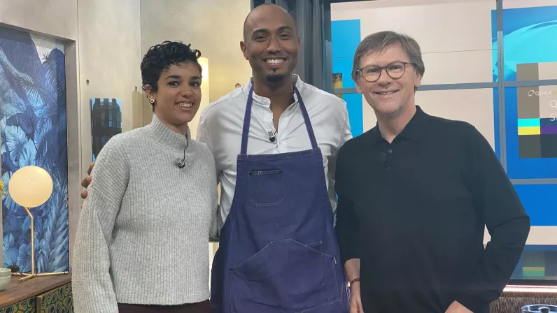 Il fait la pluie et le beau temps sur France 3 dans Météo à la carte. Aujourd’hui, Laurent Romejko apporte le soleil dans la cuisine de Brice Laurent Dubois. Ensemble, ils vont confectionner des macarons miquelonnais, une gourmandise typique de l'archipel, accompagnés d'une crème de cranberry. Christelle Clairville, fondatrice de Maison Gaston, les retrouve à table pour évoquer La Grande Aventure, patrimoine culturel immatériel de la Guadeloupe, un livre sur les savoir-faire artisanaux de l'île.