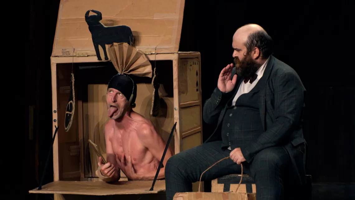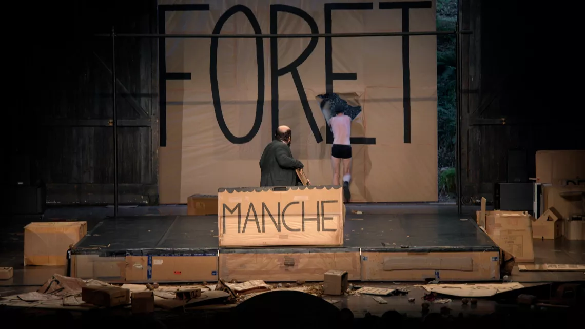 Après Bigre, Pierre Guillois et Olivier Martin-Salvan, dans un feu d’artifice de bouts de carton, nous invitent à un voyage imaginaire, fusion des délires d’un cabaret de cartoons et d’une épopée shakespearienne.