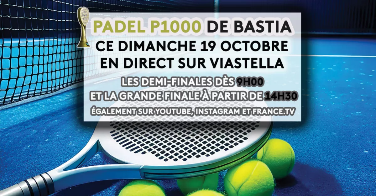 Votre chaîne régionale vous invite à suivre les phases finales du deuxième Padel P1000 de Corse, une compétition d’un niveau relevé, qui se déroulera au C5 de Bastia, ce dimanche 19 octobre, après une première édition qui avait connu le succès en avril
