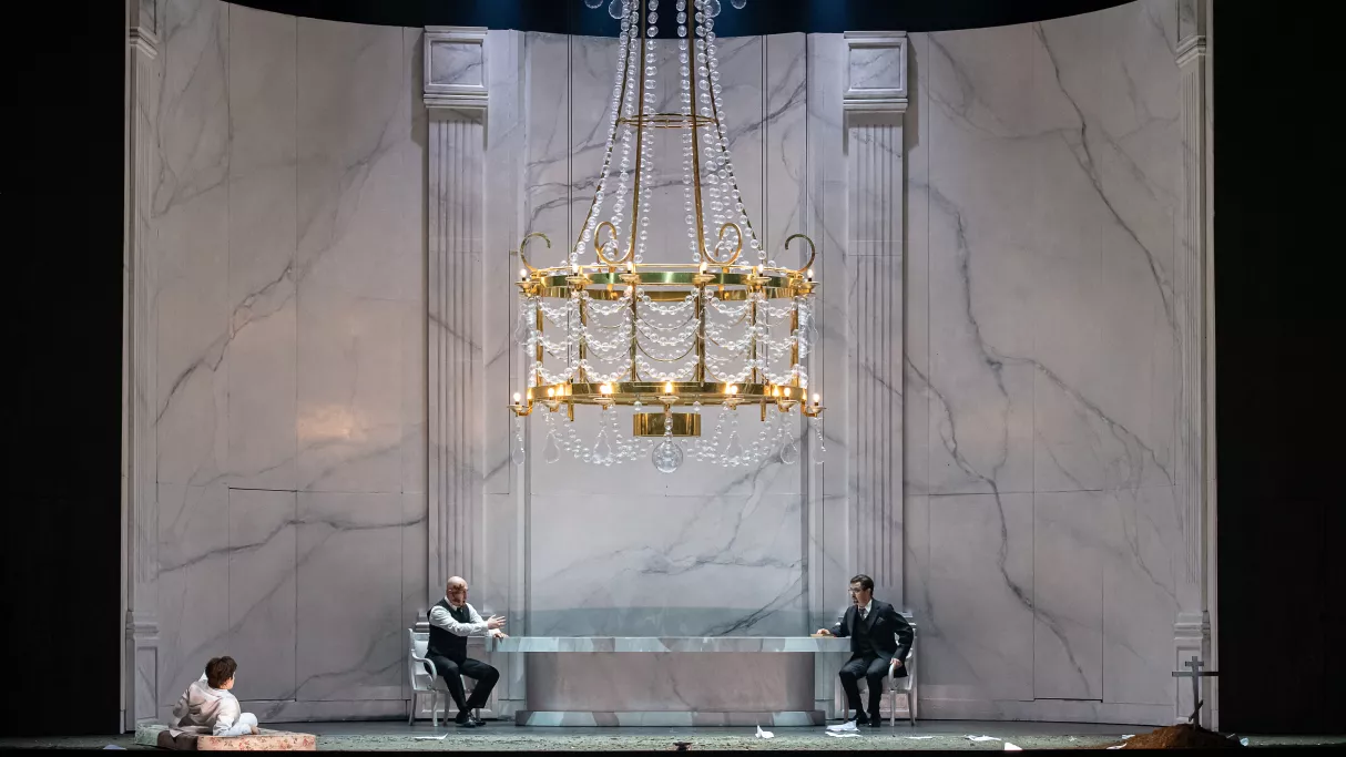 La musique, somptueux monument choral et orchestral aux nombreuses évocations folkloriques, sonde les abîmes de l’âme russe. La basse biélorusse Alexander Roslavets, membre de l’Opéra de Hambourg, interprète le rôle-titre pour la première fois et fait ses débuts au Capitole. La mise en scène de cette nouvelle production est signée par Olivier Py, le maître des univers tourmentés de la tyrannie.