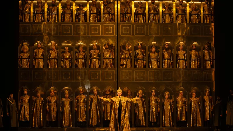 Le grandiose chef-d’œuvre de Modeste Petrovitch Moussorgski nous plonge dans les sombres années fondatrices de l’empire russe : le tsar Boris, qui a accédé au trône au prix d’un terrible crime, vacille et s’effondre sous le poids de sa mauvaise conscience.