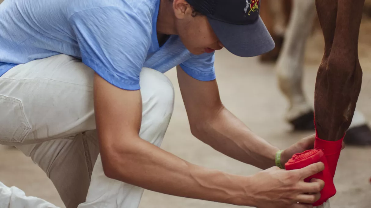À Saint-Gatien, c’est au tour d’Aristide de concourir en CSO. Accompagné de Francis Mas, le nouveau coach de l’Académie d’élite, le cavalier tente de régler les derniers détails avant de se lancer sur le parcours.