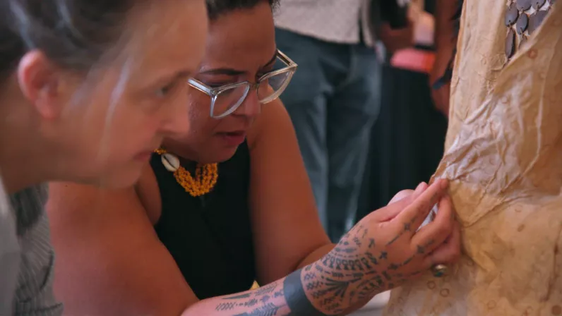 Trois experts en culture et civilisation polynésiennes éclairent le récit et le contexte rituel autour des œuvres patrimoniales. Ils évoquent l’utilité originelle des objets, la symbolique qu’ils représentent dans la cosmogonie polynésienne et leur itinéraire jusqu’à leur retour au Fenua.