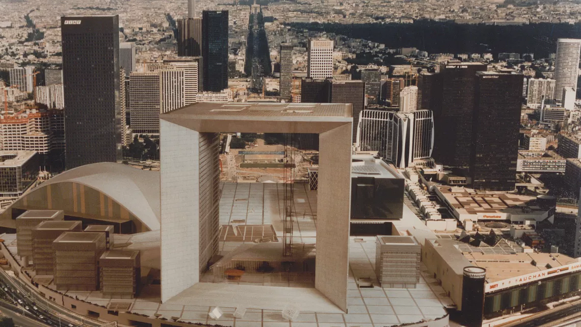 En 1981, François Mitterrand, entreprend un programme de grands travaux uniques dans l'histoire du XXe siècle. Un concours international est lancé dans le but de construire un projet emblématique à la Défense, qui viendra prolonger « l'axe historique » allant du Louvre au château de Saint-Germain-en-Laye. 424 candidats, parmi les plus grandes agences de la planète y participent. À la surprise générale, un architecte danois inconnu, J.O. Spreckelsen, ayant seulement construit une maison et quatre églises, l'emporte avec un dessin : celui de la Grande Arche qu'il ne verra jamais construite...
