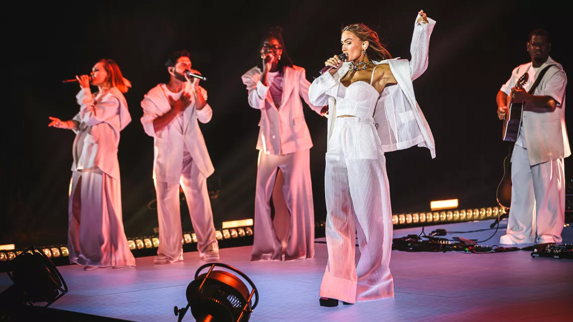 Accompagnée de ses musiciens et choristes, Vitaa offre un show vibrant mélangeant pop, R&B, soul et influences urbaines. Une performance à la hauteur de sa carrière où s’enchaînent les titres phares de son répertoire : « À fleur de toi », « Je te le donne », « Comme d’hab », « Promets-moi », « Avant toi » ou encore « Confessions ». Des chansons qui ont marqué toute une génération et qui résonnent encore aujourd’hui par leur justesse.