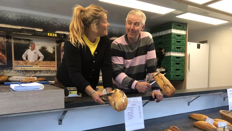 Puis, direction la Mayenne où Frédéric a choisi de s'installer en 2021 pour vivre sa seconde vie, loin de l’agitation de la capitale. C’est dans une ferme à Soucé, une commune de 149 habitants, qu’il a installé son fournil. Chaque semaine, à partir du jeudi, il met un point d’honneur à aller lui-même vendre son pain, en installant son camion sur les places de marché, là où les commerces ont déserté. Une manière pour lui de renouer avec ses racines et de maintenir un lien fort avec les habitants de ces villages.