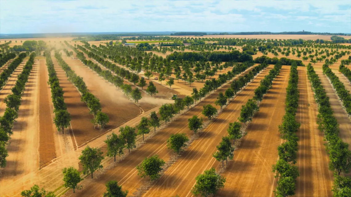 La Beauce est la région céréalière la plus connue de France. Ici l’agro-industrie a imprimé sa marque partout dans le paysage. Pour faire passer nos machines, on a effacé les forêts, nivelé la terre. C'est l'origine même du mot paysage. En travaillant la terre, on a rendu le « pays sage ». Notre agriculture est sous contrôle. Dans nos moissonneuses, les ordinateurs pilotent les semis et les coupes. Mais le climat, lui, nous échappe. Et si la révolution agricole de demain n'était pas tout simplement de redonner une place à nos paysans et des arbres à nos paysages ? Ce qui pourrait nous sauver, serait… de replanter des arbres dans nos champs. Cette pratique s'appelle l'agroforesterie. L’ombre des arbres protège les parcelles du rayonnement solaire. Et leur feuillage aide à conserver l’humidité de l’air. C'est une solution naturelle pour réduire l'évaporation du sol.