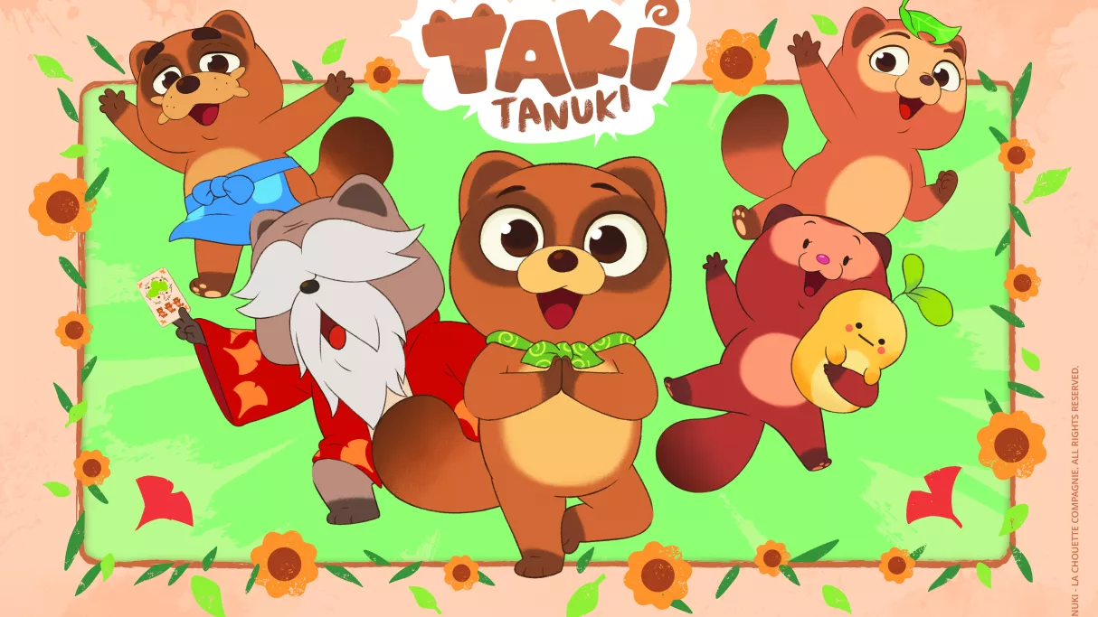 Taki est une adorable petite tanuki qui vit dans la forêt avec sa petite sœur Taya et ses parents, Maman Tanuki et Papa Tanuki. Depuis quelque temps, Taki apprend l’art de la transformation, un pouvoir magique hérité de sa famille que la tanuki rousse adore utiliser pour s’amuser et surtout pour se faciliter la vie au quotidien ! Parfois, les transformations sont un peu compliquées à réaliser mais, heureusement, elle peut compter sur sa famille et surtout sur Papi Tanuki, l’expert en la matière, pour la guider et lui apprendre à reproduire les poses de yoga qui déclenchent les transformations.