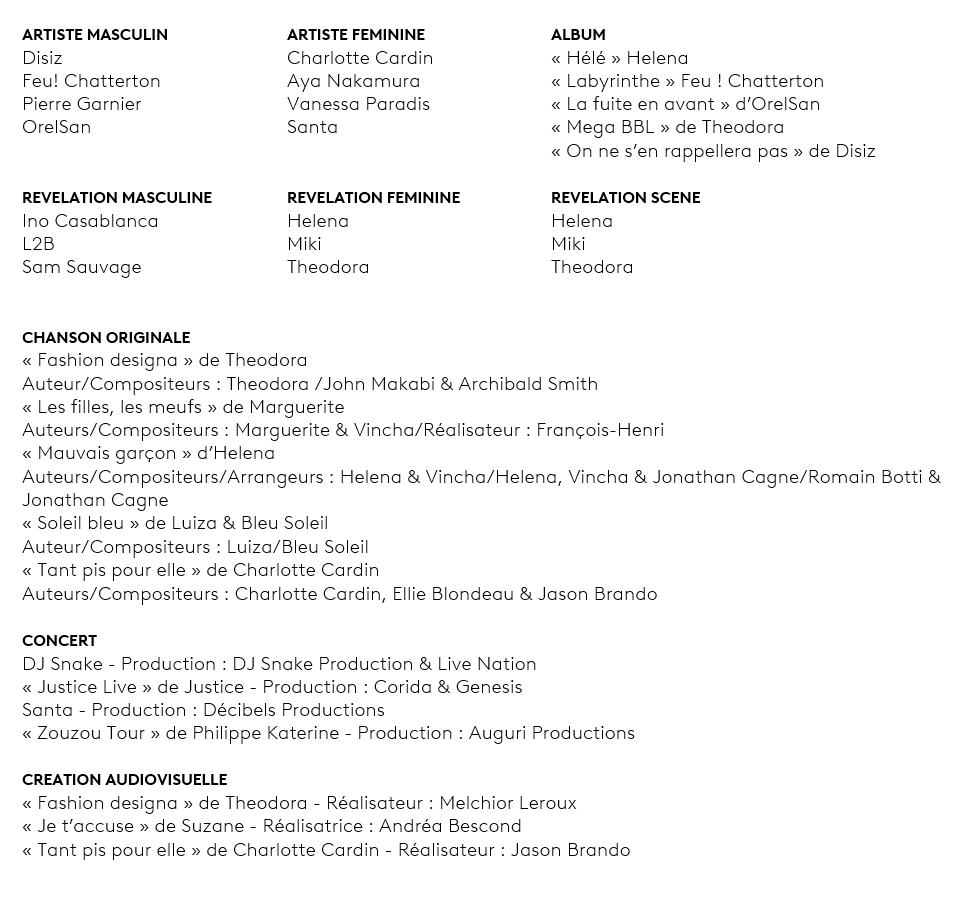 Les artistes nommés