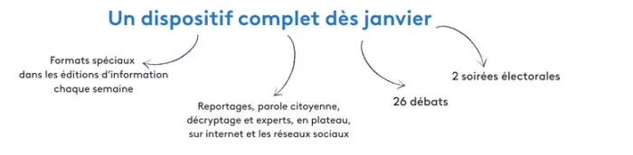 Du 18 janvier au 18 mars : deux mois, 26 débats en tout dans le Grand Est, de Charleville-Mézières à Mulhouse, de Strasbourg à Troyes en passant par Reims, Epinal, Nancy, Metz… Les rendez-vous seront nombreux sur france.tv et ICI pour donner la parole aux candidats et permettre aux citoyens de passer en revue tous les sujets qui les intéressent.
