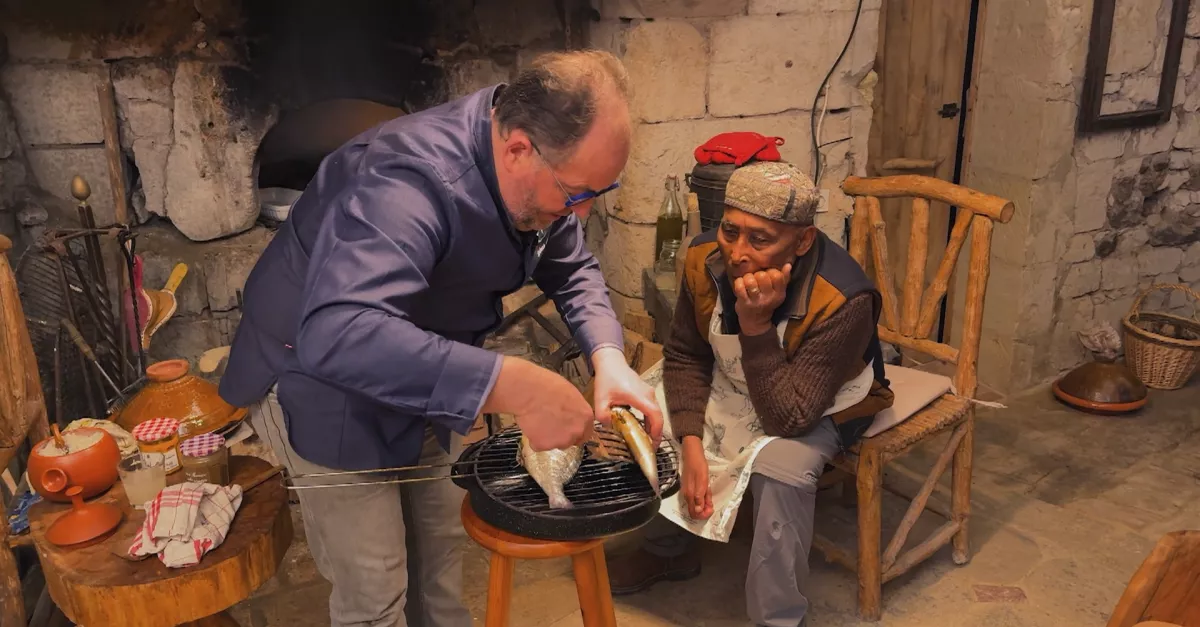 Un feu qui crépite dans la cheminée, des plats en terre cuite colorés, des légumes variés et de belles dorades… de quoi inspirer à Sylvain la préparation d’une tajine aux saveurs chaudes et parfumées, sublimée par les pommes et poires tapées de François.