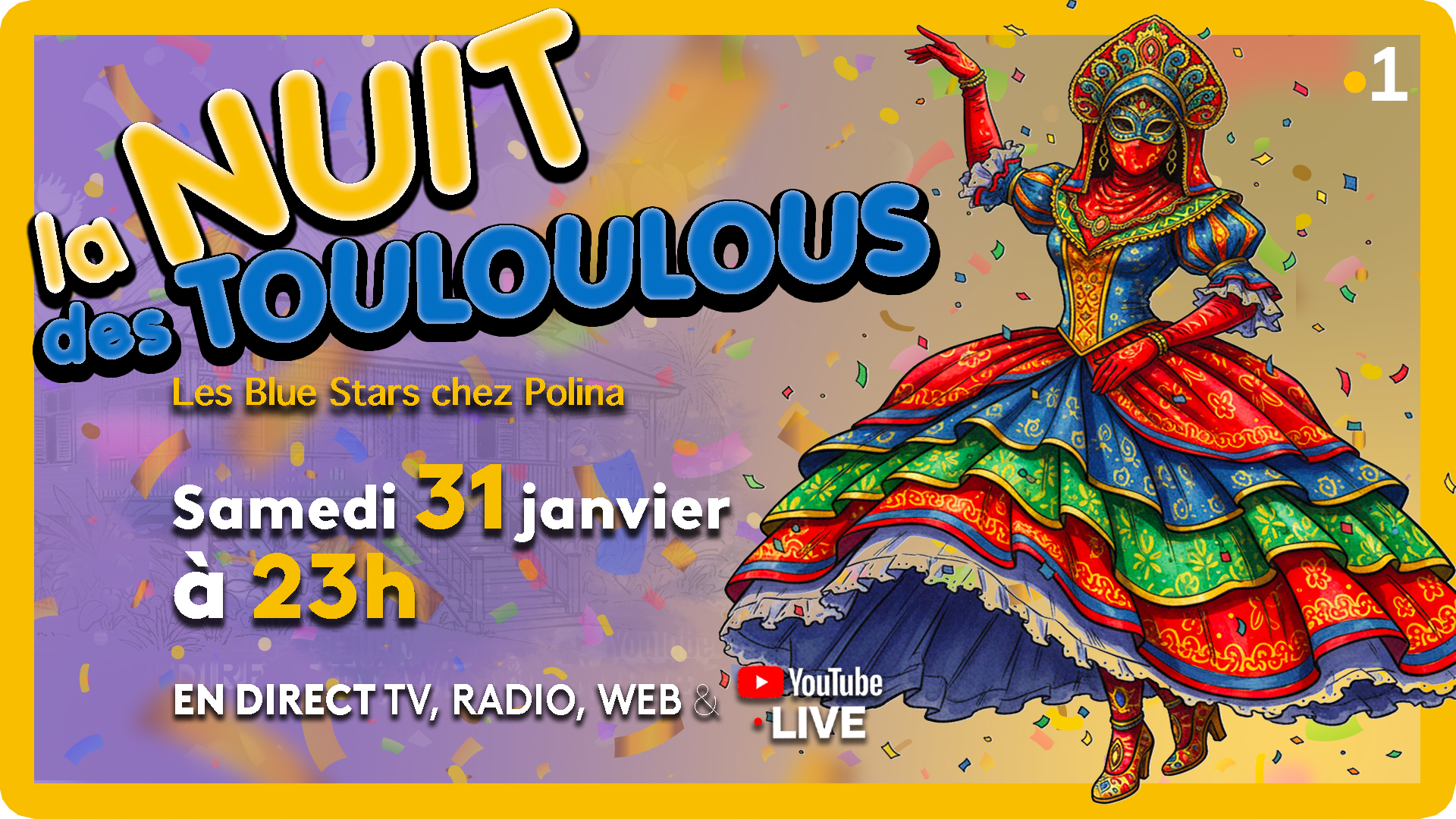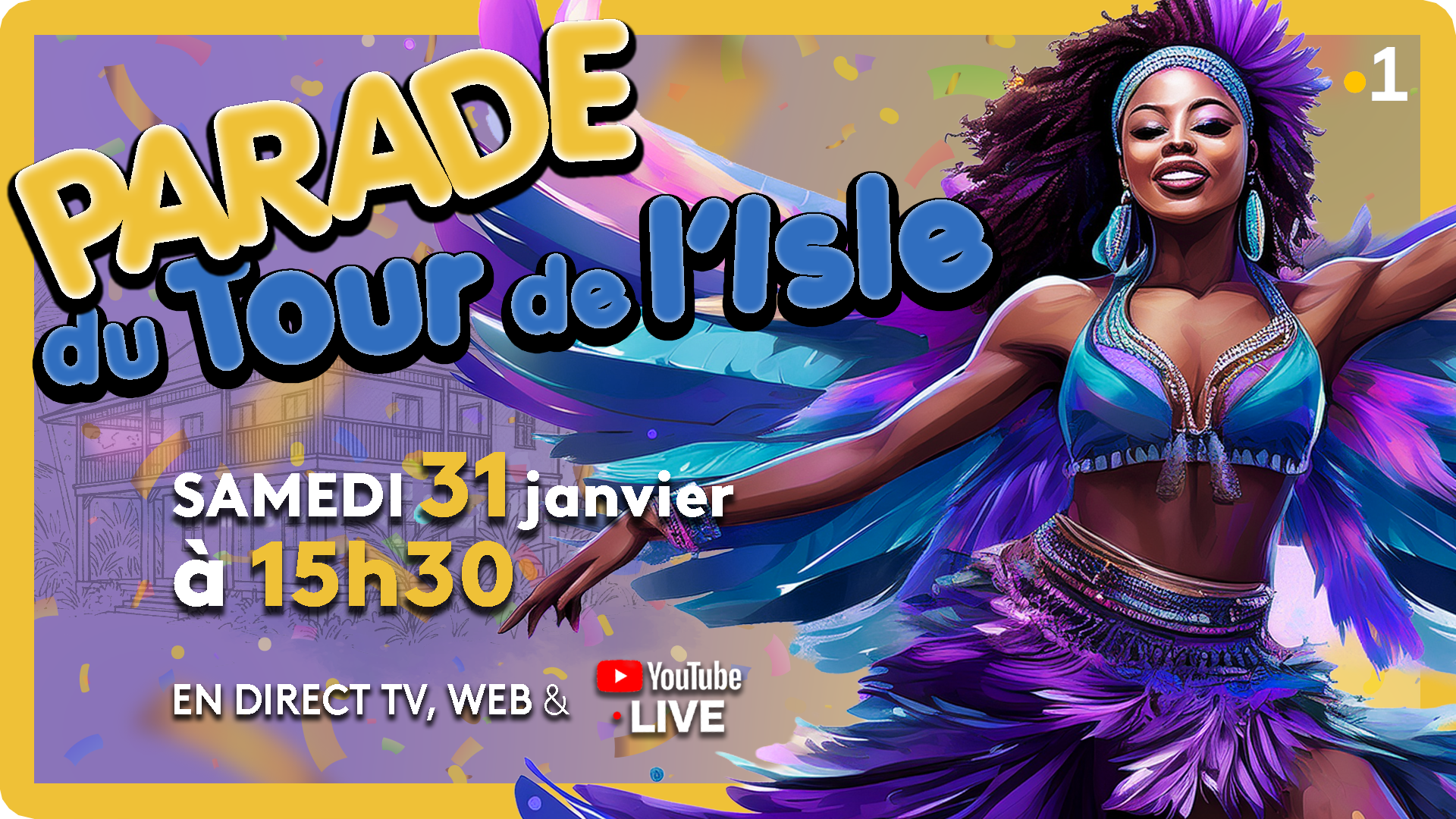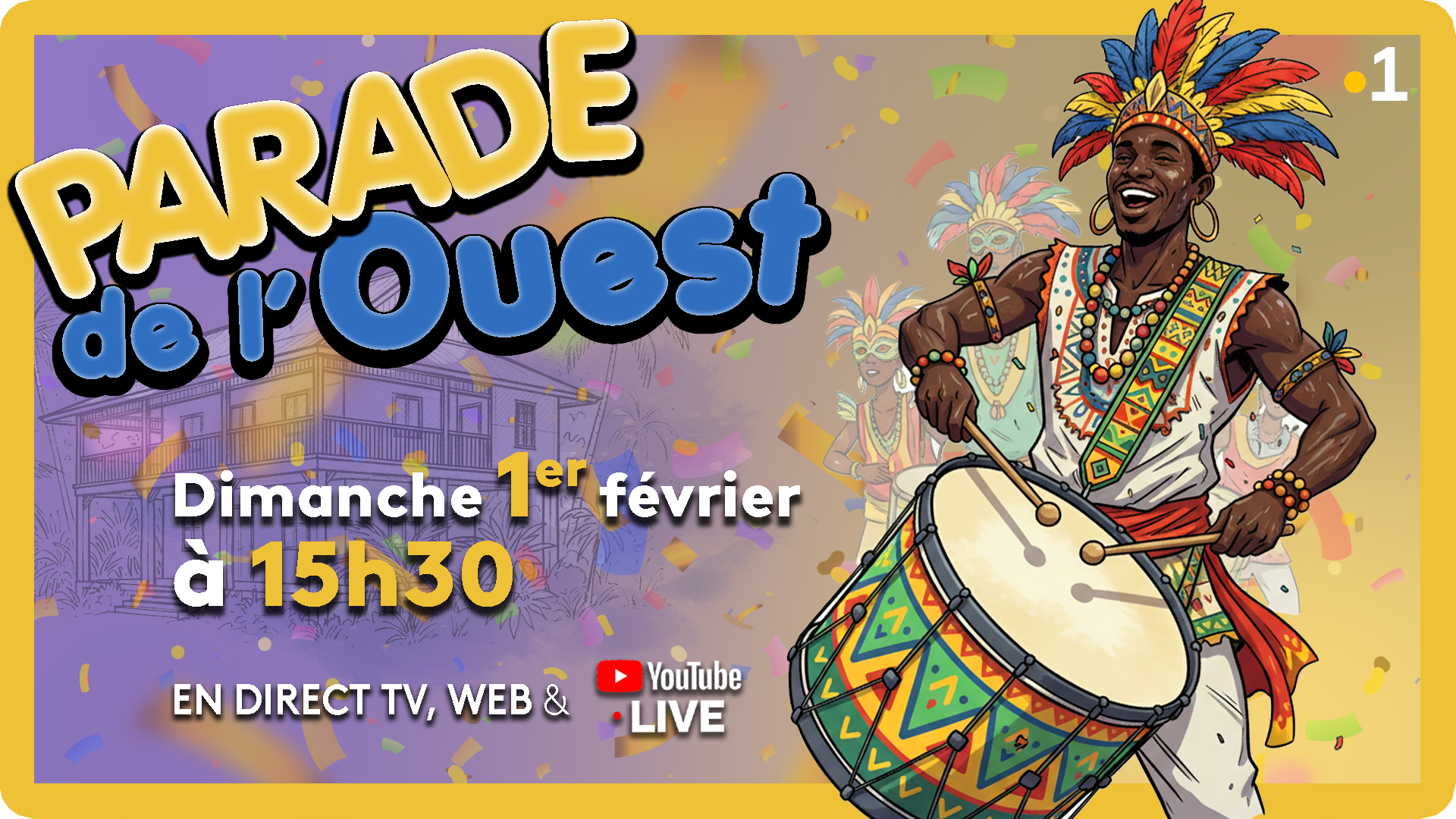 Un seul réflexe: rendez-vous sur Guyane la 1ère, en radio, en télé, sur le web et en YouTube Live. 🎭🥁✨