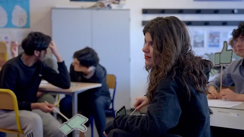 En nous immergeant dans une classe de troisième, diverse et hétéroclite – avec la complicité de Rémi Le Cren, un professeur d’histoire-géo engagé qui a à cœur, au quotidien, de former les esprits critiques de demain –, nous avons mené l’enquête, décortiqué les mécanismes d’une rumeur, réfléchi aux ressorts sur lesquels s’appuie la désinformation et observé les conséquences de nos likes et partages dans la vie réelle. Avec, en point d’orgue, la scène du Théâtre de la Concorde où nos jeunes protagonistes se sont produits pour délivrer – devant un parterre de spectateurs – le fruit de leurs découvertes.