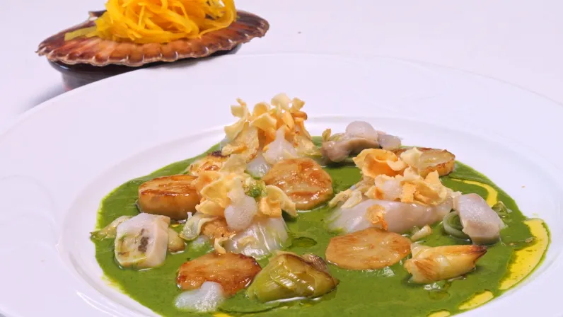 Ensemble ils vont rencontrer Tomy qui est pêcheur de coquilles Saint-Jacques en plongée. Ils reviennent de la criée avec des trésors à cuisiner dans la cuisine d’Ottmar et ce duo d’experts s’associe pour sublimer les coquilles Saint-Jacques, crues, et les huîtres… chaudes !
