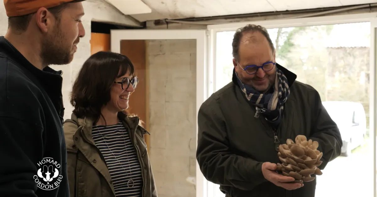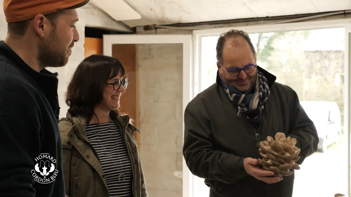 Pour enrichir ce défi iodé, ils rendent visite à Maxime, myciculteur du coin spécialisé dans les pleurotes et les shiitakés. Passionné et intarissable sur son métier, il maîtrise aussi bien la culture que la transformation de ses champignons.