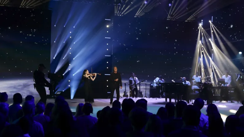 Laury Thilleman, accompagnée d’André Manoukian au piano et des plus grands artistes de la scène musicale, célèbrent les 20 ans de la Fête de la chanson française.