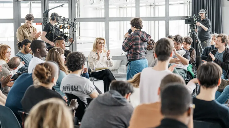 Catherine Deneuve face à la rédaction du Papotin